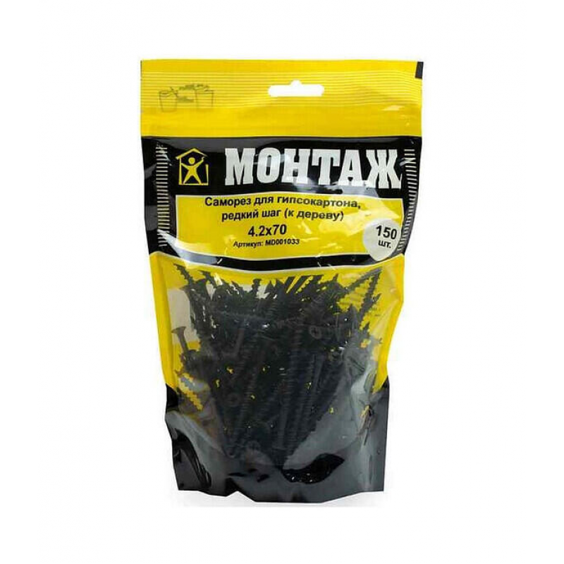Саморезы для гипсокартона по дереву, 4.2x70 мм, фосфатированные. Упаковка: 150 шт. в пакете. Производство Беларусь.