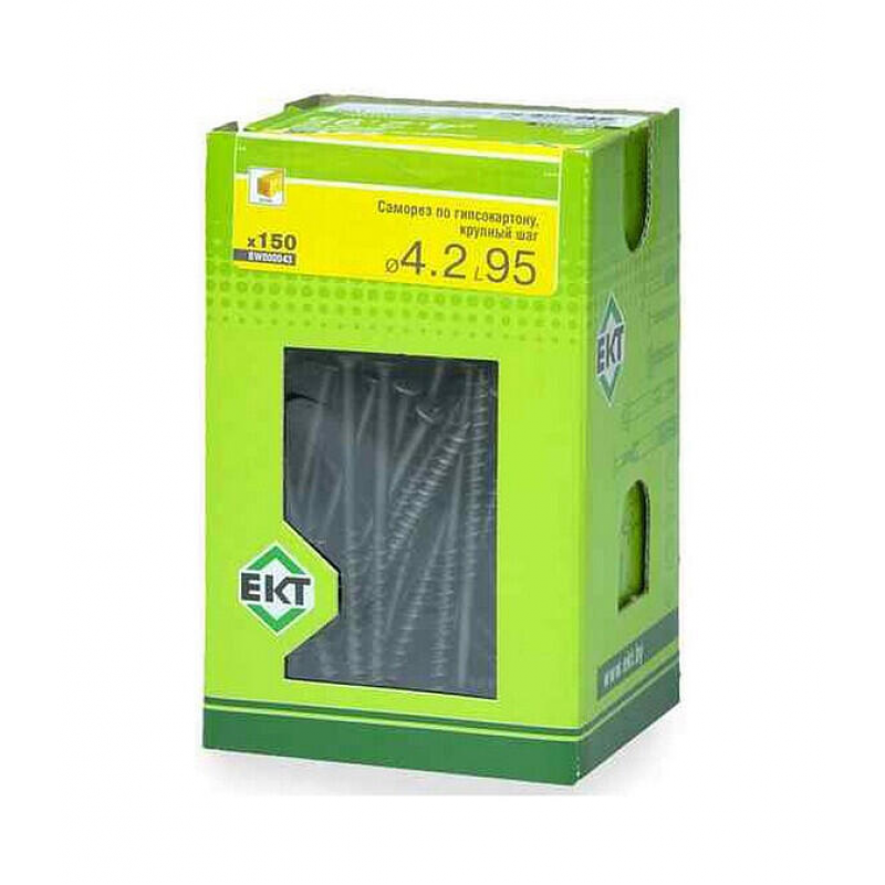 Саморез по гипсокартону 4.8х95 мм с крупным шагом резьбы для дерева. Фосфатированное покрытие, острый наконечник. Упаковка: картонная коробка с окном, 150 шт.