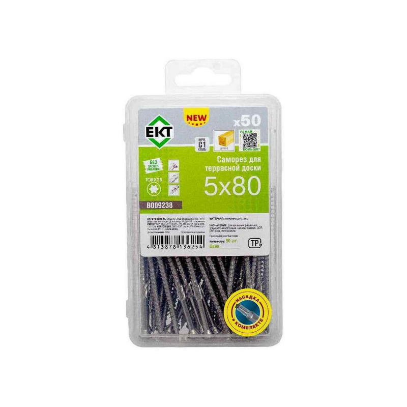 Саморез универсальный из нержавеющей стали. Длина: 80 мм, диаметр резьбы: 5 мм, острый наконечник. Упаковка: пластиковый контейнер (50 шт). Производитель: ООО «ЕКТ Компани», Германия.
