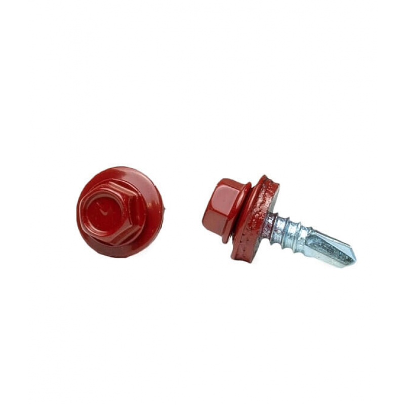 Саморез кровельный 5,5х19 мм RAL 3011 (красно-коричневый) в пластиковом контейнере (50 шт/уп). Материал: сталь с защитным покрытием. Наконечник со сверлом для металла.