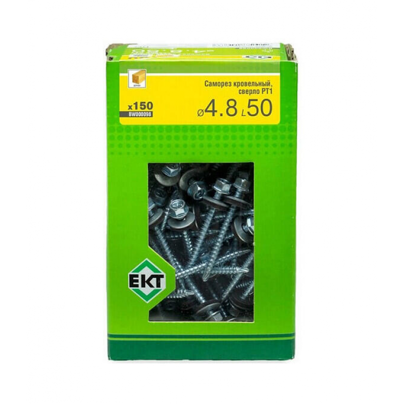 Кровельный саморез ЕКТ PROFI 4.8х50 мм с резиновой прокладкой и сверловым наконечником PT1. Цинковое покрытие. Упаковка 150 шт.