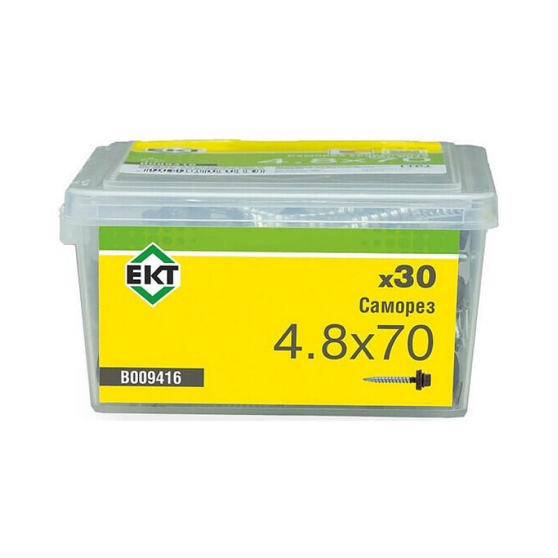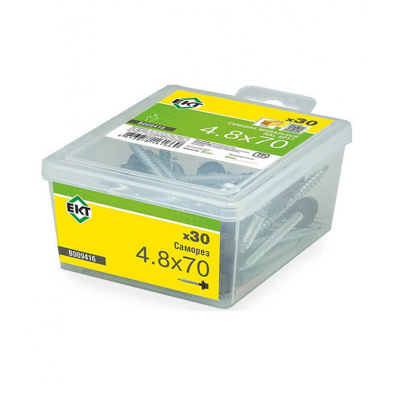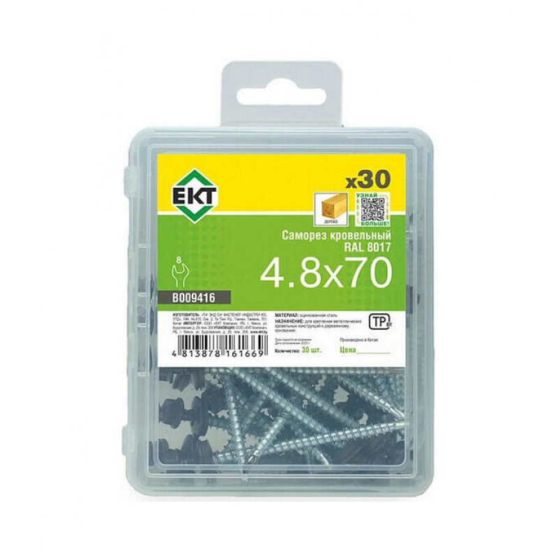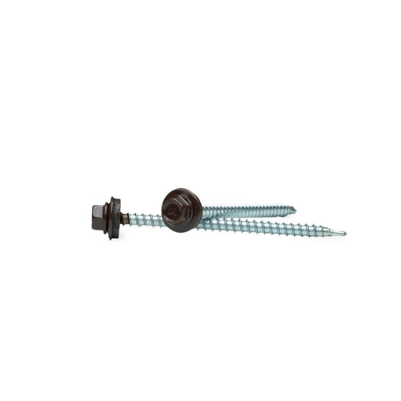 Кровельный саморез 4,8х70 мм со сверлящим наконечником PT1 и резиновой прокладкой. Цвет: RAL 8017 (шоколадно-коричневый). Материал: сталь. Упаковка: пластиковый контейнер (30 шт).