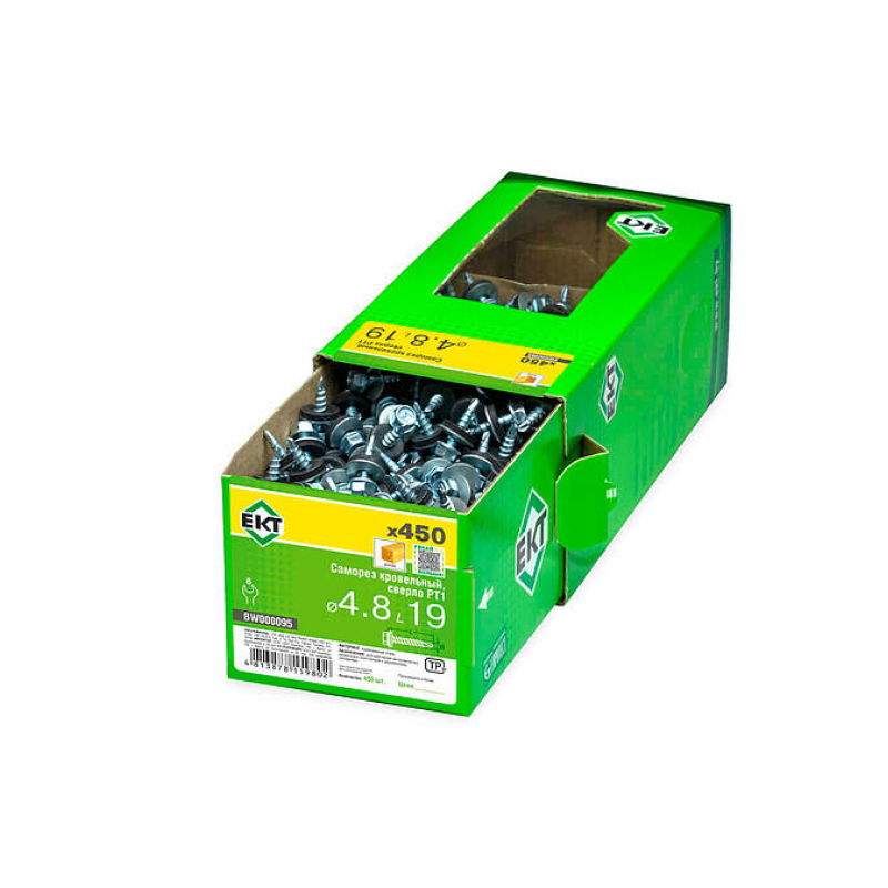 Кровельный саморез из стали с цинковым покрытием, размер 4.8х19 мм. Оснащен резиновой прокладкой и сверловым наконечником PT1. Упаковка: 450 шт в картонной коробке.