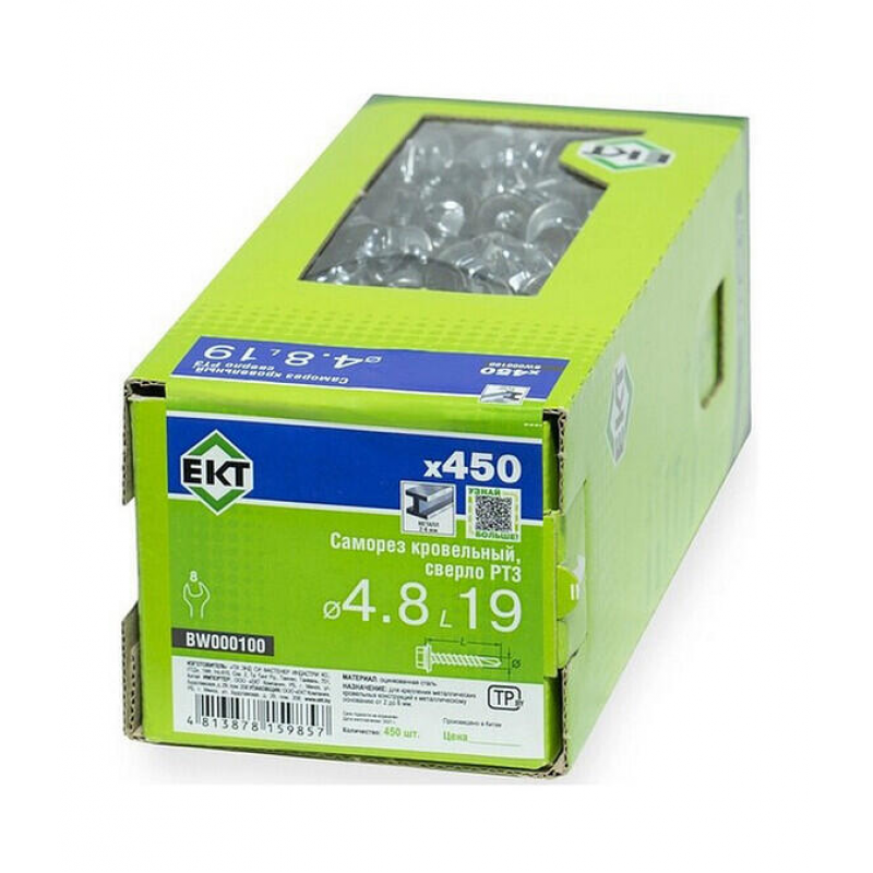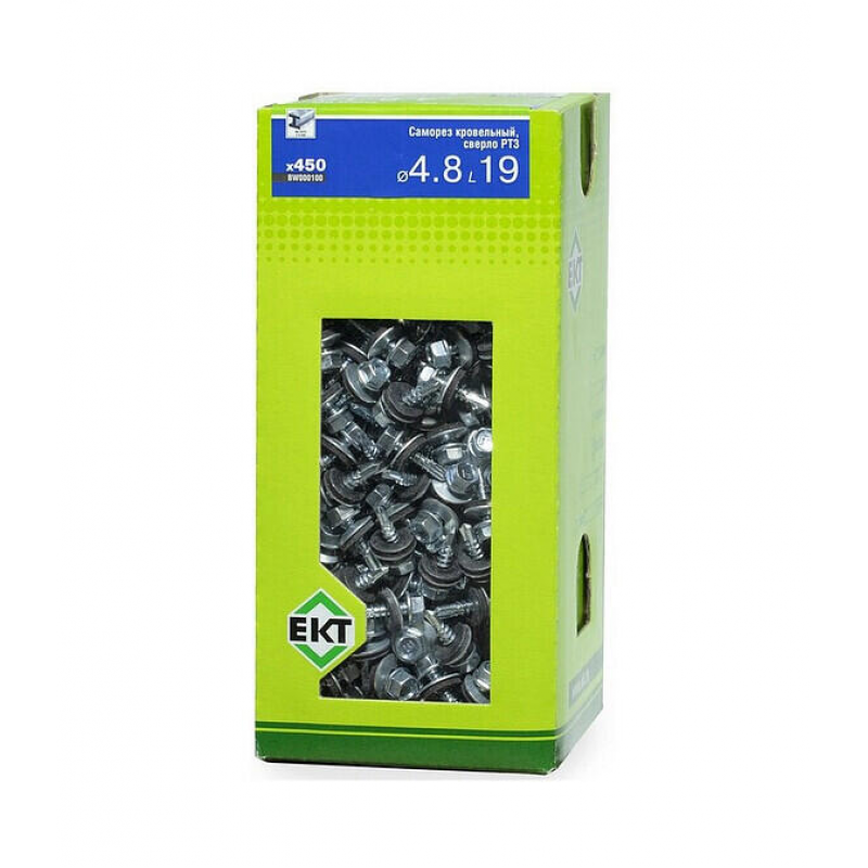 Кровельный саморез из стали с цинковым покрытием. Размер: 4.8х19 мм. Оснащен сверлом PT3 для металла и резиновой уплотнительной прокладкой. Упаковка: картонная коробка 450 шт.