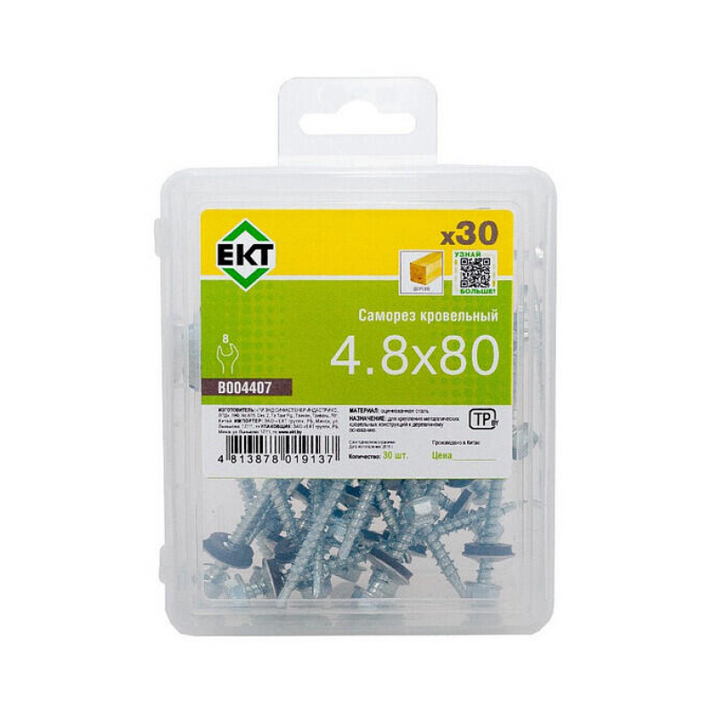 Кровельный саморез из стали с цинковым покрытием. Размер: 4.8х80 мм. Оснащен сверлящим наконечником для легкого монтажа и резиновой уплотнительной прокладкой (EPDM) для герметичности. Упакован в пластиковый контейнер, 30 штук в упаковке.