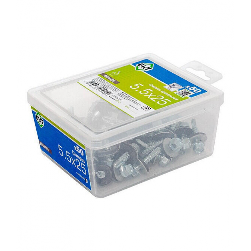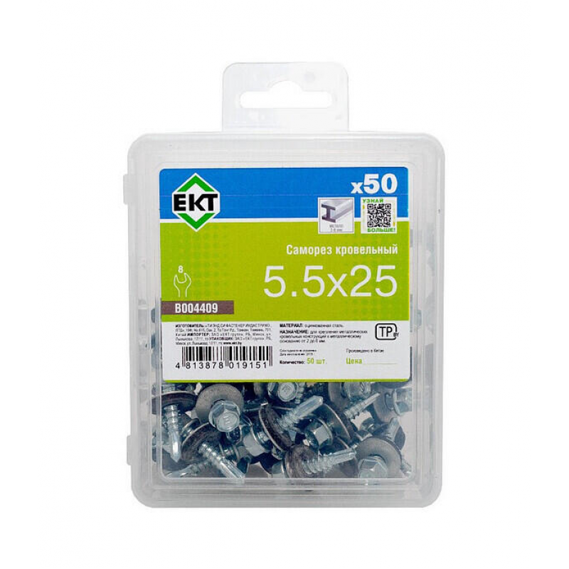 Кровельный саморез из стали с цинковым покрытием, размер 5.5х25 мм. Оснащён сверловым наконечником PT3 и герметизирующей резиновой прокладкой. Упакован в пластиковый контейнер (50 шт).