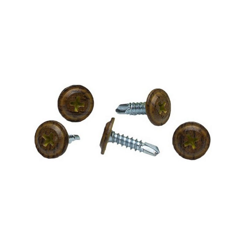 Прессшайба обеспечивает плотное прилегание материалов. Наконечник со сверлом упрощает монтаж в металл без предварительного сверления. Покрытие 'темный дуб' повышает коррозионную стойкость и эстетичность.