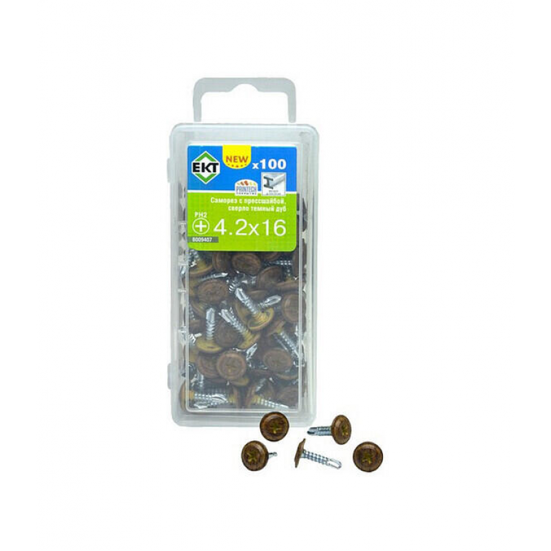 Саморез с прессшайбой PRINTECH, размер 4.2х16 мм. Наконечник со сверлом, цвет 'темный дуб'. Материал: сталь. Упаковка: пластиковый контейнер (100 шт).