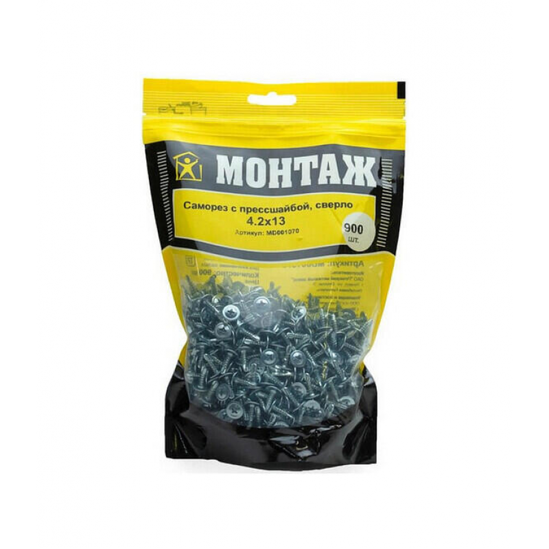 Саморез с прессшайбой П/Ш, МОНТАЖ. Цинк. Сверло 4.2х13 мм. Упаковка: 900 шт. Вес: 1 кг. Производитель: ООО «ЕКТ Компани», Беларусь.