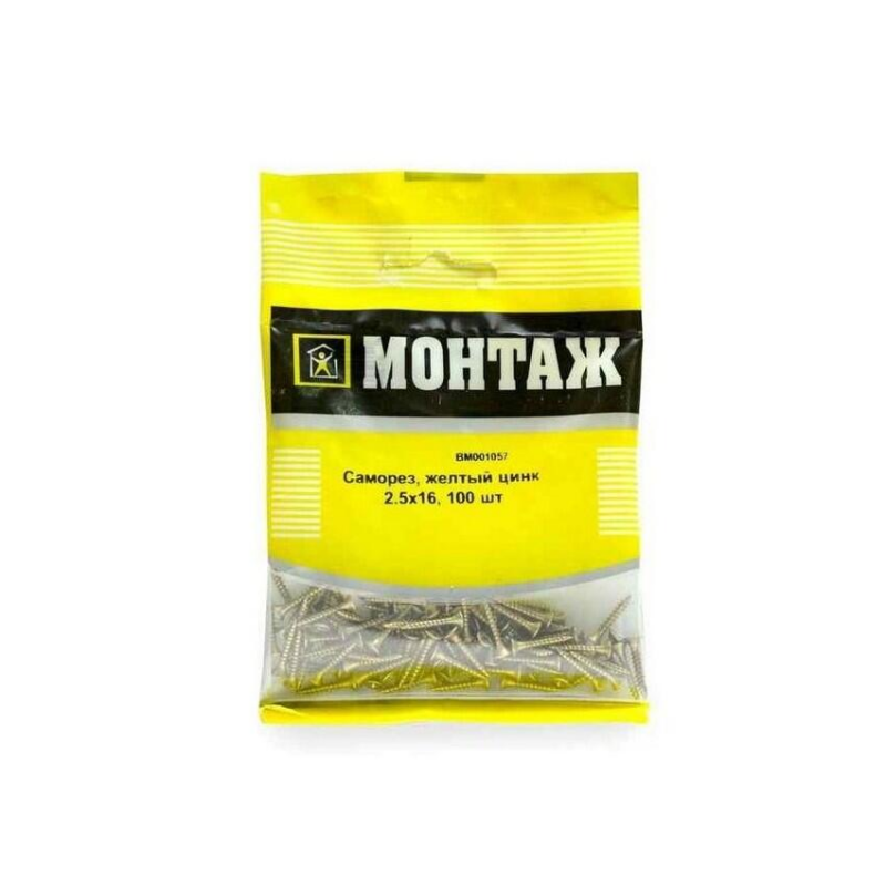 Универсальный саморез МОНТАЖ из стали с желтым цинковым покрытием. Предназначен для работы с деревом, ДСП и ПВХ. Размер: 2.5х16 мм. Упаковка: 100 штук.