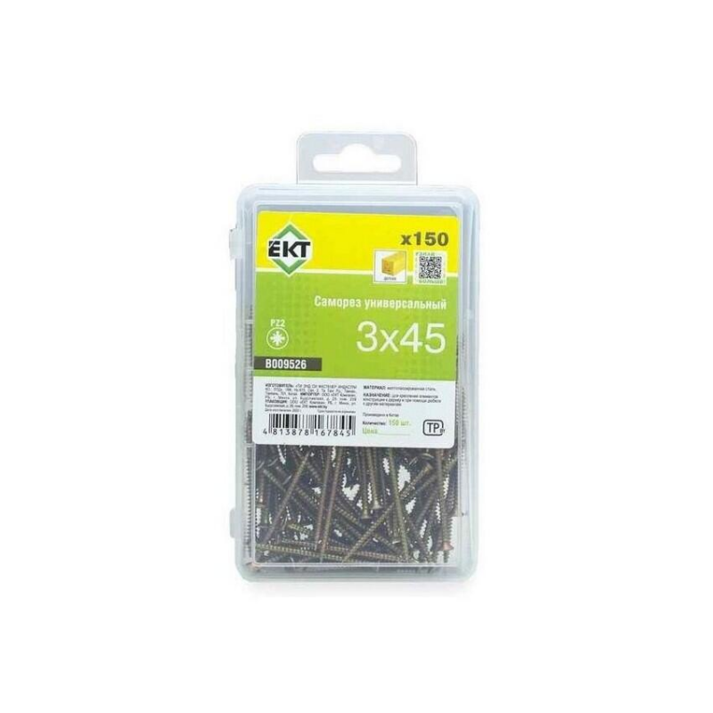 Универсальный саморез из стали с желтым цинковым покрытием. Предназначен для надежного крепления дерева, ДСП и ПВХ. Размер: 3.0x45 мм. Упаковка: пластиковый контейнер, 150 шт.