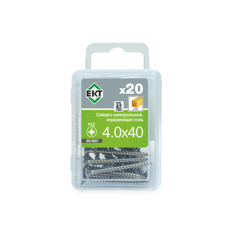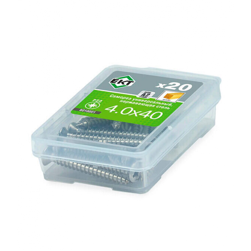 Универсальные саморезы из стали с антикоррозийным желтоцинковым покрытием. Размер 4.0х40 мм, острый наконечник. Упаковка: пластиковый контейнер (20 шт).
