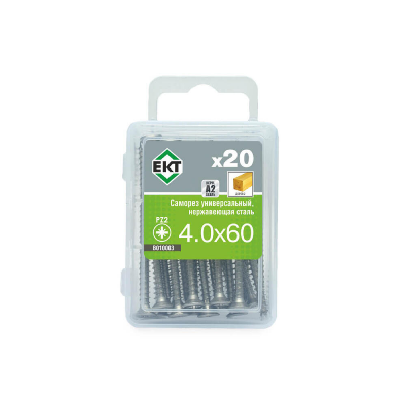 Саморез универсальный 4.0х60 мм из стали с желтым цинковым покрытием. Острый наконечник. Упаковка: пластиковый контейнер (20 шт). Производитель: ТИ ЭНД СИ ФАСТЕНЕР ИНДАСТРИ КО., ЛТД (Китай). Вес упаковки: 0.078 кг.