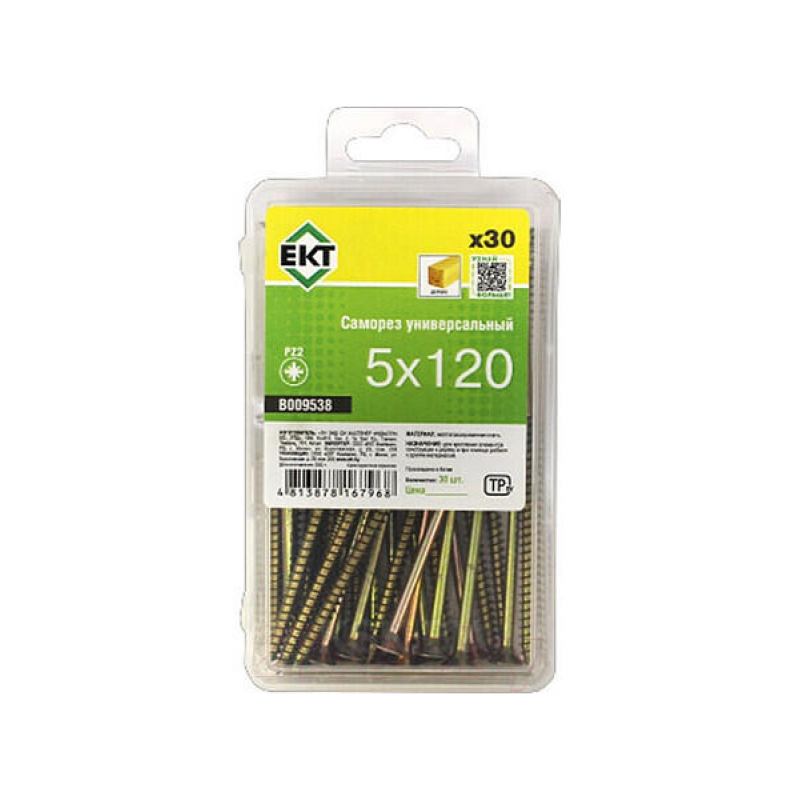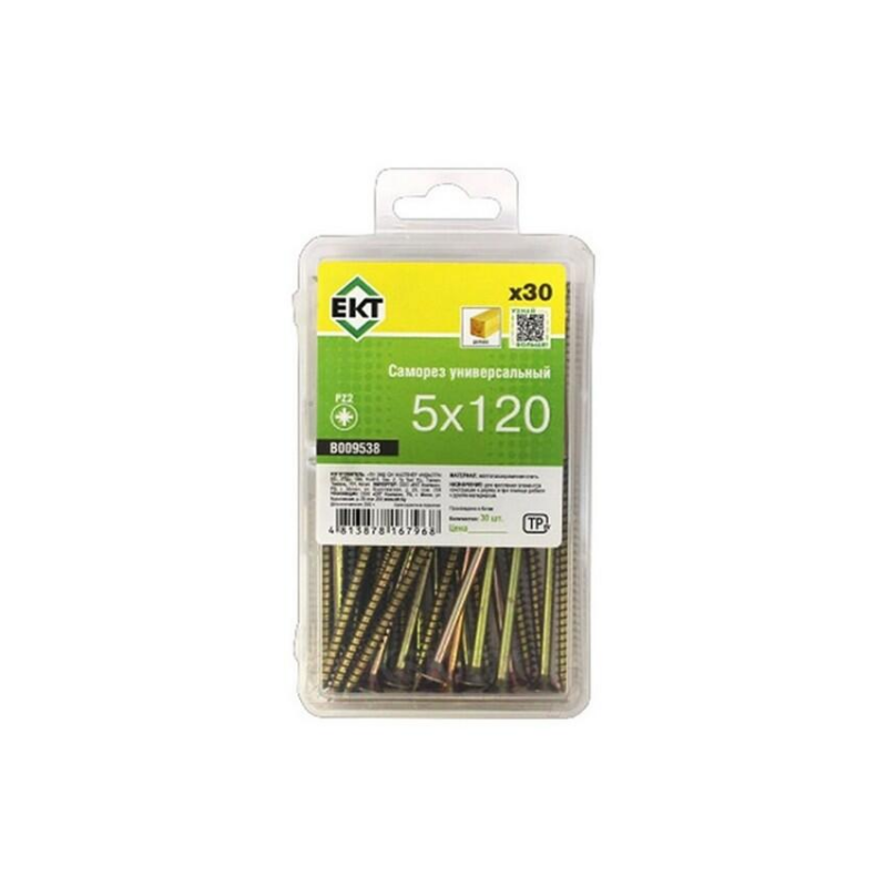 Универсальный саморез из желтопассированной стали с желтым цинковым покрытием. Размер: 5.0x120 мм. Упаковка: пластиковый контейнер, 30 шт. Бренд: ЕКТ.