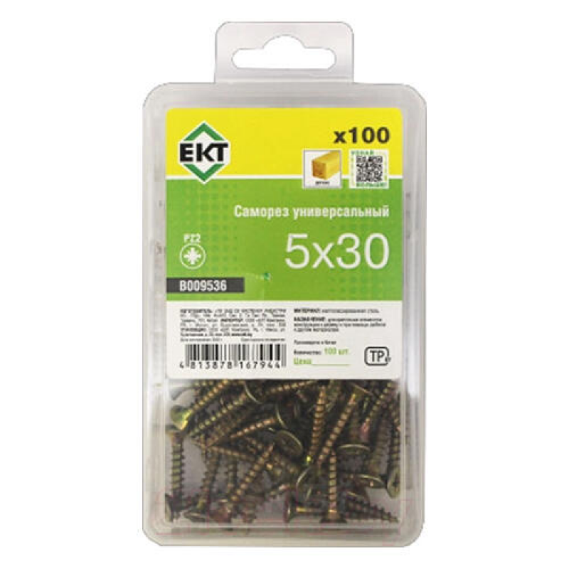 Высокая коррозионная стойкость благодаря желтому цинку. Острый наконечник для легкого вкручивания. Удобная упаковка для хранения и использования.
