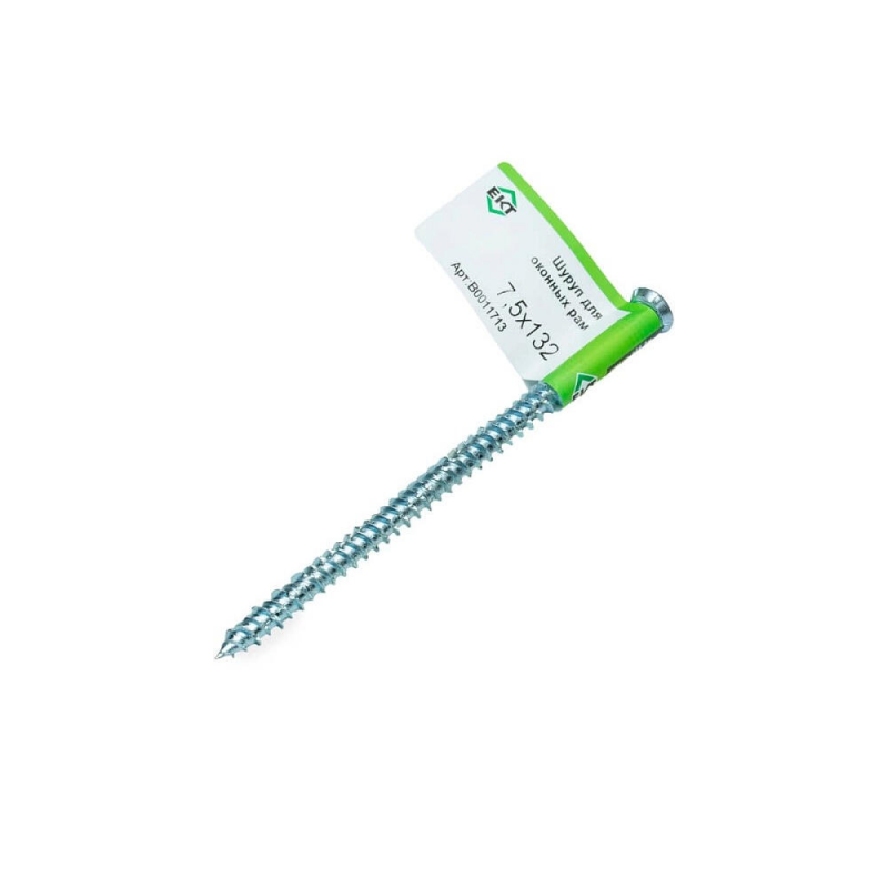 Усиленный шуруп для оконных рам 7,5х132 мм из стали с острым наконечником. Бренд: ЕКТ. Продается поштучно.