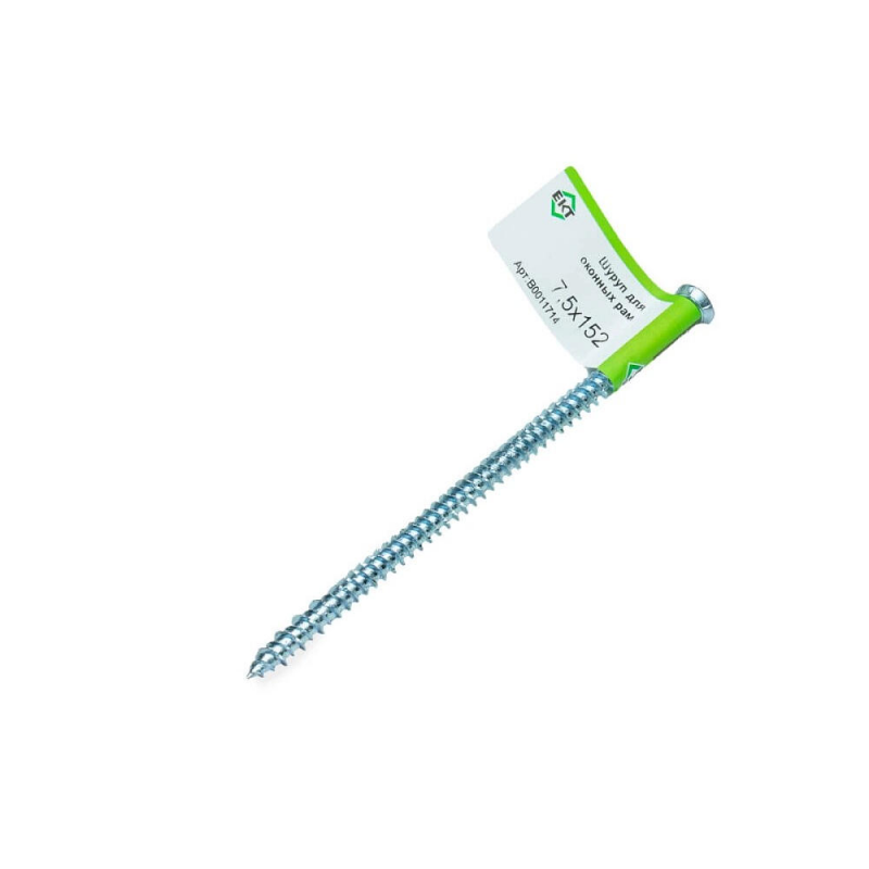 Усиленный шуруп для оконных рам 7,5х152 мм. Материал: сталь. Острый наконечник. Продается поштучно без упаковки.