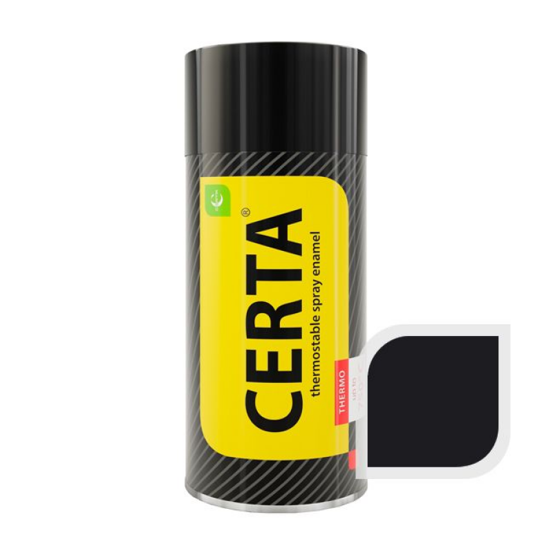 Эмаль аэрозольная CERTA термостойкая черная (800°C) объемом 520 мл — универсальное решение для защиты поверхностей, подверженных экстремальным температурам и агрессивным воздействиям. Краска создана на основе кремнийорганических смол и подходит для нанесения на металл, бетон, кирпич, цемент, штукатурку. Сохраняет целостность покрытия при нагреве до 1000°C (линейка Certa HS — до 1200°C), обеспечивая антикоррозийную защиту и паропроницаемость. Устойчива к химическим веществам: минеральным маслам, нефтепродуктам, солевым растворам.