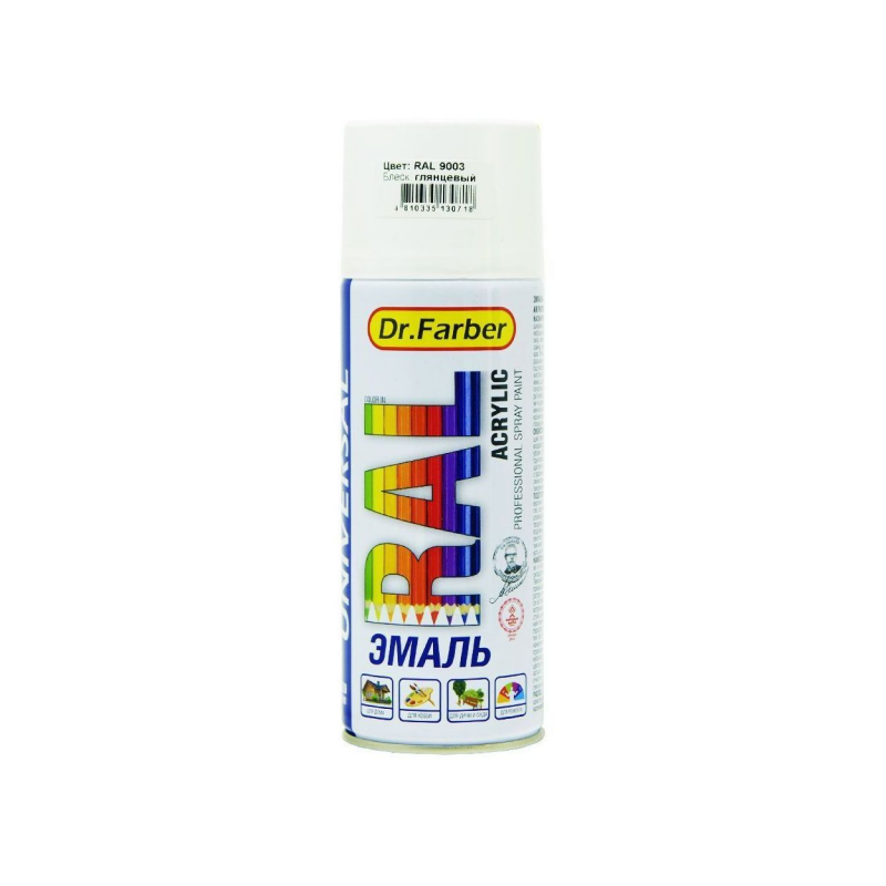 Аэрозольная акриловая эмаль Dr.Farber универсальная (глянцевая, RAL 9003, 520 мл)