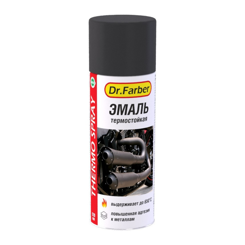 Эмаль Dr.Farber аэрозольная термостойкая серебристая, 520 мл — профессиональное решение для защиты и окрашивания металлических поверхностей, подверженных экстремальным температурам до 650°C. Произведена в Беларуси компанией ООО "МАВ".