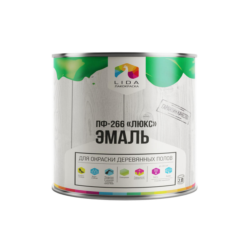 Эмаль LIDA ПФ-266 «Люкс» терракота — это глянцевая алкидная эмаль для создания долговечного и стильного покрытия на деревянных полах и поверхностях внутри помещений. Образует ровное, гладкое покрытие насыщенного терракотового цвета с отличной укрывистостью. Идеально подходит для окрашивания полов, плинтусов, лестниц и других элементов из древесины, ДВП и ДСП в жилых и бытовых комнатах.