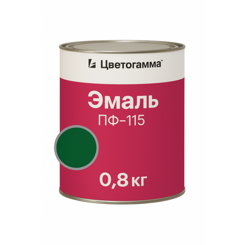 Темно-зеленая глянцевая эмаль ПФ-115 от бренда Цветогамма на основе алкидного лака. Универсальное покрытие для наружных и внутренних работ по металлу, дереву, пластику и штукатурке. Обладает отличной адгезией и создает прочное, износостойкое покрытие.