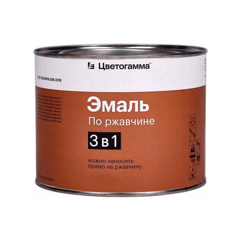 Грунт-эмаль 3 в 1 «Цветогамма» вишневого цвета предназначена для защиты и декоративной окраски металлических поверхностей со следами ржавчины (до 100 мкм). Подходит для наружных и внутренних работ по металлоконструкциям, ограждениям, стеллажам и другим стальным и чугунным поверхностям. Алкидно-уретановый состав обладает атмосферостойкостью, влагостойкостью и создает прочное глянцевое покрытие. Расход: 100-180 г/м² на один слой. Высыхание за 24 часа при +20°C.