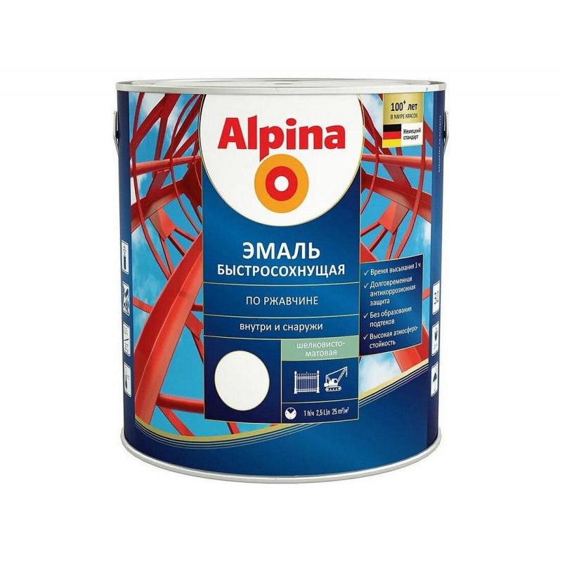 Однокомпонентная грунт-эмаль 3 в 1 для антикоррозионной защиты и декоративной отделки чистых или частично прокорродировавших черных металлов (сталь, чугун). Сочетает свойства адгезионной грунтовки, антикора и финишной эмали. Быстро сохнет, обеспечивает долговременную защиту от ржавчины, устойчива к воде, маслам, бензину и нефтепродуктам. Объем: 2.5 л, цвет: белый (RAL9003), шелковисто-матовая поверхность.
