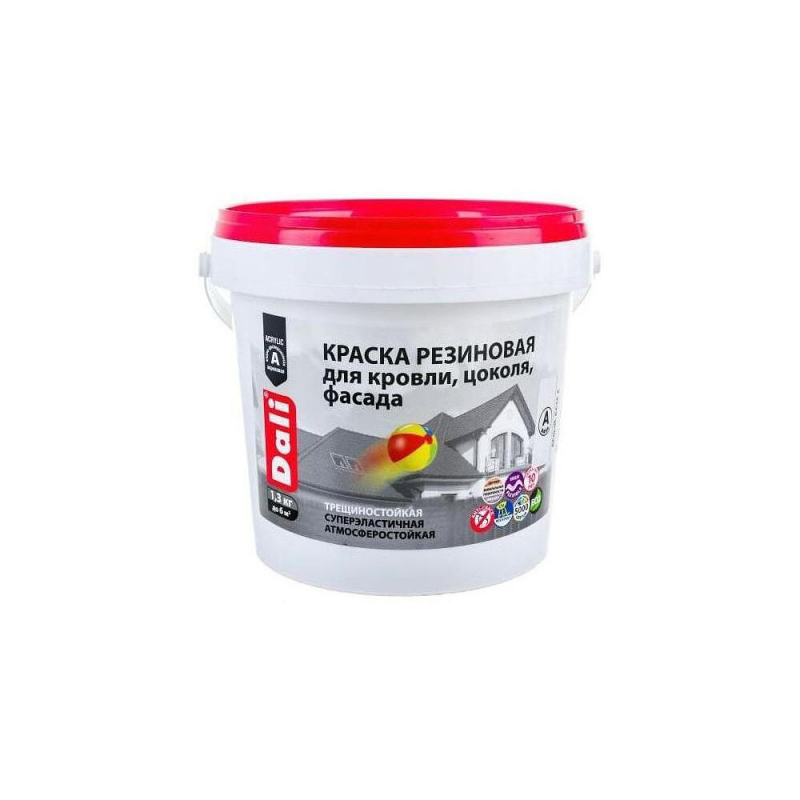 Резиновая краска DALI белого цвета для создания долговечного защитно-декоративного покрытия. Предназначена для наружных и внутренних работ по минеральным, деревянным и металлическим поверхностям. Образует эластичное матовое покрытие, устойчивое к трещинам, влаге и механическим воздействиям. Вес: 1.3 кг.