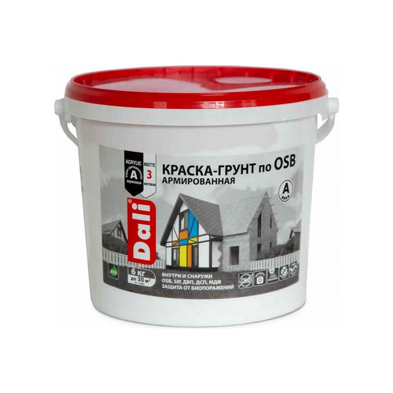 Армированная акриловая краска-грунт DALI для комплексной защиты и отделки поверхностей из OSB, древесины, минеральных оснований и плитных материалов. Используется как для первичного грунтования, так и в качестве финишного износостойкого покрытия для внутренних и наружных работ. Образует матовое белое покрытие, пригодное для колеровки.