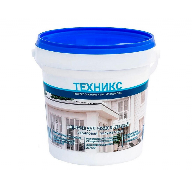 Акриловая краска ТЕХНИКС для высококачественной покраски окон, дверей, фасадов и других деревянных изделий (кроме полов). Создает прочное полуматовое покрытие, подчеркивающее структуру древесины. Подходит для внутренних и наружных работ. Готова к применению, не имеет резкого запаха и экологически безопасна.