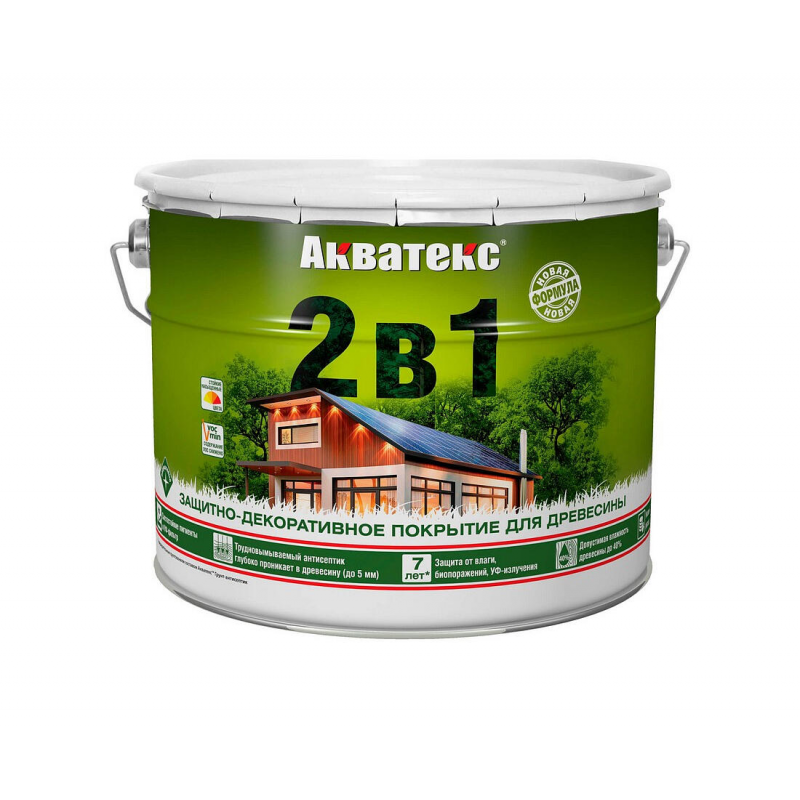 Комплексная защита «2 в 1»: совмещает грунтование и финишное покрытие. Надежно защищает от гниения, плесени, грибка, УФ-излучения и атмосферных воздействий. Подчеркивает естественную структуру дерева, позволяя имитировать благородные породы. Паропроницаемое покрытие сохраняет дышащие свойства древесины. Срок службы снаружи помещений: до 7 лет.