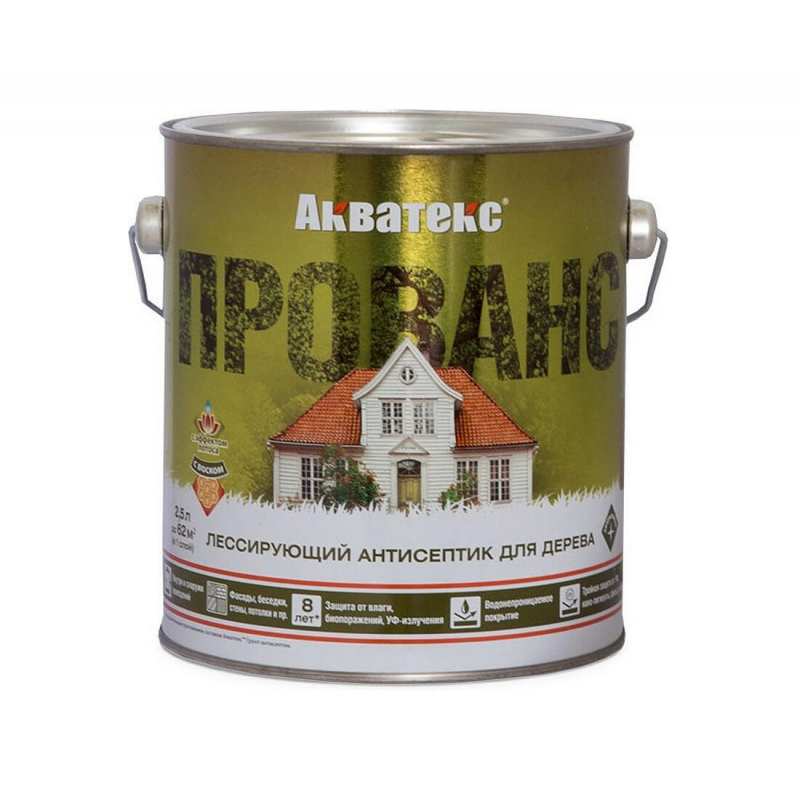 Антисептик АКВАТЕКС ПРОВАНС белый — это лессирующая пропитка на алкидной основе для комплексной защиты древесины. Состав создает прочное полуматовое покрытие, подчеркивающее натуральную текстуру, и предназначен для наружных и внутренних работ. Идеально подходит для обработки фасадов, стен, мебели, ограждений, окон и дверей из древесины, ДСП и ДВП. Объем: 2,5 л.