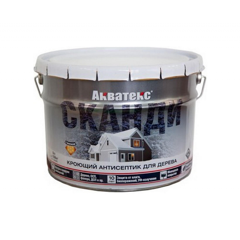 Антисептик АКВАТЕКС СКАНДИ белого цвета для защиты и декорирования древесины, ДСП и ДВП. Подходит для внутренних и наружных работ. Создает полуматовое покрытие, устойчивое к атмосферным воздействиям.
