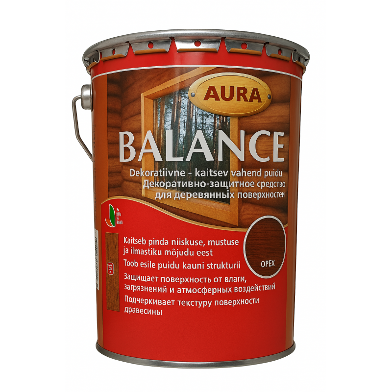 Aura Balance — классический антисептик для защиты и декоративной отделки дерева внутри и снаружи помещений. Лессирующее покрытие подчеркивает естественную текстуру, не образуя толстой пленки. На основе высокоочищенных растворителей со слабым запахом. Объем: 2,7 л, цвет: орех.