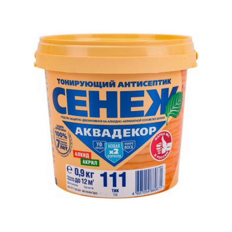 Антисептик Сенеж Аквадекор 111 тик предназначен для долговременной защиты и декоративной отделки древесины под ценные породы. Готовый к применению водоразбавляемый состав на алкидно-акрилатной основе с льняным маслом, биоцидами, УФ-фильтрами и микро восками обеспечивает защиту от атмосферных осадков, плесени, грибов, водорослей, насекомых-древоточцев и ультрафиолетовых лучей. Формирует эластичное, дышащее покрытие с полуматовым шелковистым блеском, подчеркивающее текстуру древесины. Применяется для наружных и внутренних работ по новым и ранее обработанным деревянным поверхностям, включая стены, обшивки, двери, ограды, садовую мебель, фанеру, ДСП и ДВП.