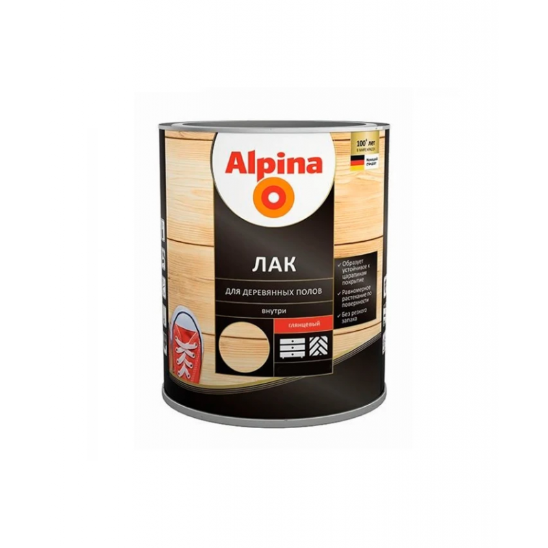 Глянцевый алкидно-уретановый лак Alpina для защиты и декорирования деревянных полов, паркета, лестниц и других внутренних деревянных поверхностей, подверженных интенсивным нагрузкам. Создает прочное, износостойкое и эластичное покрытие с эффектным блеском. Объем: 2,5 л.