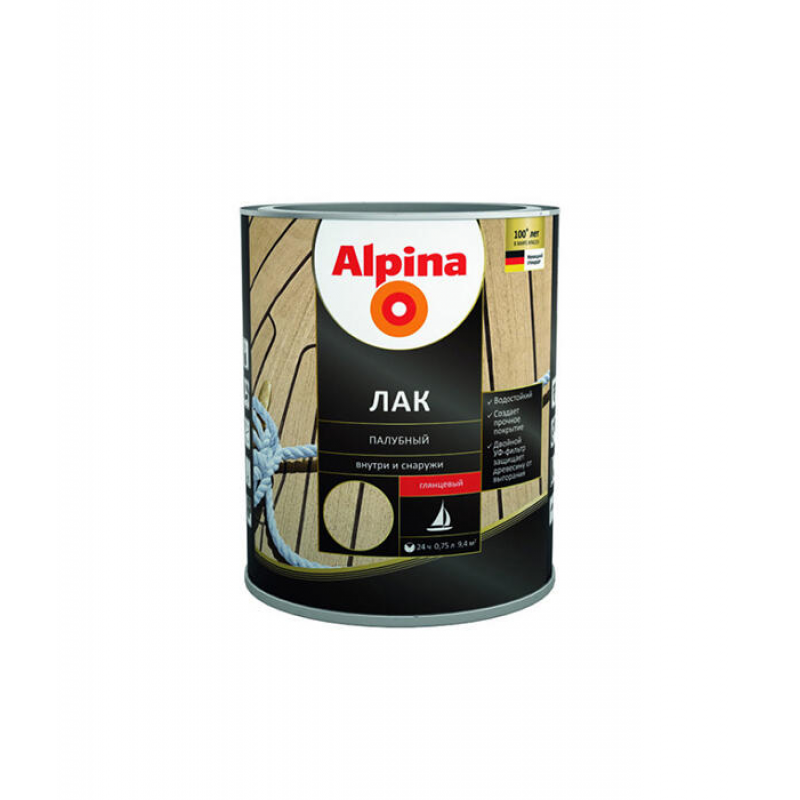 Глянцевый алкидно-уретановый лак Alpina для создания сверхпрочных и влагостойких покрытий. Предназначен для защиты надводных элементов яхт, судов и любых сильнонагруженных деревянных поверхностей внутри и снаружи помещений. Подчеркивает текстуру древесины, образуя гладкое, износостойкое и эластичное покрытие.