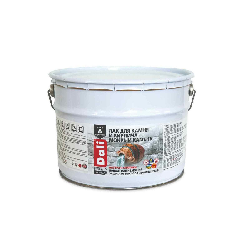 Бесцветный акриловый лак для защитно-декоративной обработки минеральных поверхностей. Образует полуглянцевое, атмосферостойкое и светостойкое покрытие, выдерживающее нагрев до +50°C. Предназначен для внутренних и наружных работ по бетону, камню, кирпичу и штукатурке (кроме полов и крыш). Объем: 9 л.