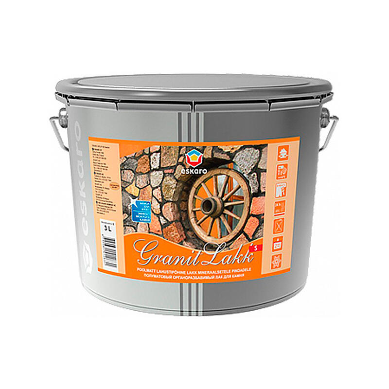 Полуматовый лак Eskaro Granit Lakk S для защиты и декоративной отделки минеральных поверхностей. Предназначен для наружных и внутренних работ по бетону, кирпичу, клинкеру, штукатурке, натуральному и искусственному камню. Подчеркивает фактуру, придает эффект 'мокрого камня' и повышает износостойкость основания.