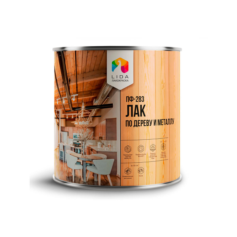 Глянцевый лак LIDA ПФ-283 на алкидной основе для создания долговечного и эстетичного защитного покрытия. Идеально подходит для обработки деревянной и металлической мебели, окон, дверей и других поверхностей внутри помещений. Придает насыщенный глянцевый блеск, подчеркивая естественную текстуру древесины. Обладает отличной влагостойкостью.