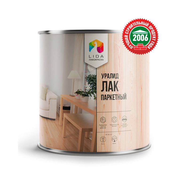 Глянцевый паркетный лак LIDA УраЛид для создания прочного и эстетичного покрытия. Предназначен для обработки паркетных полов и любых деревянных поверхностей внутри помещений (квартиры, дома). Обладает высокой адгезией, быстро сохнет и безопасен для здоровья при правильном использовании. Идеален для создания долговечного глянцевого финишного слоя.