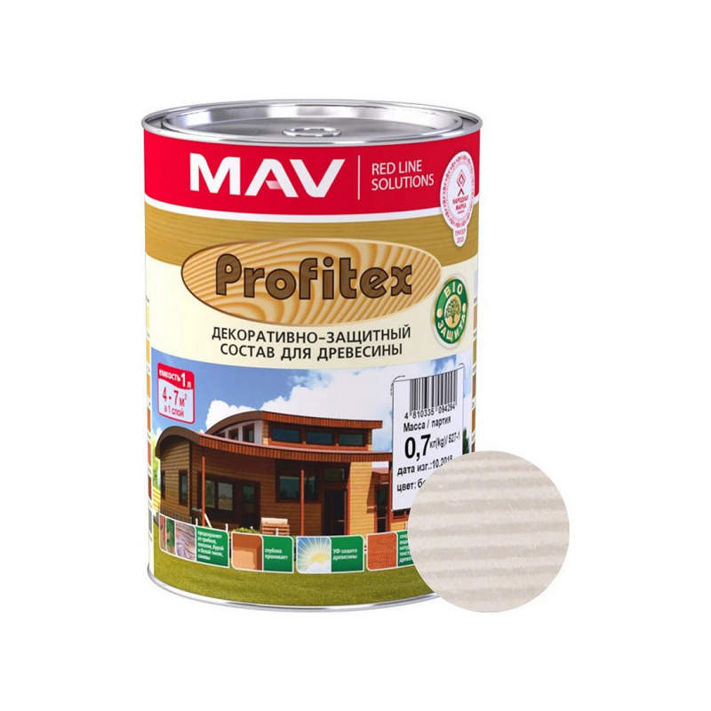 Пропитка Profitex белого цвета на алкидной основе для наружных и внутренних работ. Предназначена для отделки и обновления неокрашенных деревянных поверхностей: стен, потолков, дверей, оконных рам, срубов, беседок, садовой мебели и изгородей. Имитирует ценные породы дерева, подчеркивая естественную текстуру, обеспечивает полуглянцевый финиш. Объем: 1 л (0,7 кг).