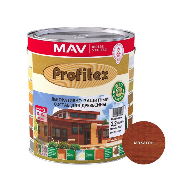Алкидная пропитка Profitex махагон для наружных и внутренних работ. Предназначена для декоративной отделки и защиты новых и ранее обработанных деревянных поверхностей: стен, потолков, дверей, оконных рам, срубов, беседок, садовой мебели, заборов и террас. Имитирует ценные породы древесины, подчеркивая ее естественную текстуру, и придает насыщенный красно-коричневый цвет с полуглянцевым блеском.