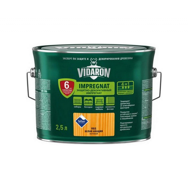 Защитно-декоративная пропитка Vidaron Импрегнат для дерева. Предназначена для наружных и внутренних работ. Подчеркивает натуральную текстуру древесины, создавая элегантное матовое покрытие. Обеспечивает устойчивость к атмосферным воздействиям, влаге и УФ-излучению. Подходит для шлифованных и нешлифованных поверхностей: фасадов, садовой мебели, беседок, стен. Не предназначена для полов и лестниц. Цвет: белая акация. Объем: 2,5 л.
