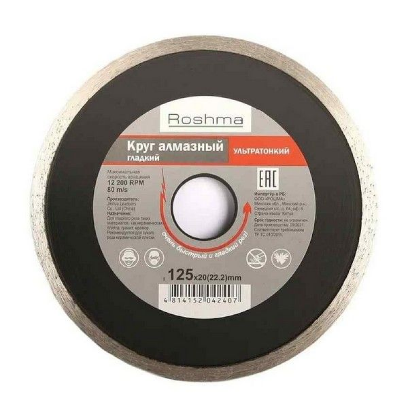 Диск алмазный РОШМА 125х1,4мм сплошной тонкий — это эффективный инструмент для точной и аккуратной резки. Его высокая производительность и надёжность делают его отличным выбором для профессионалов и мастеров, работающих с твёрдыми материалами.