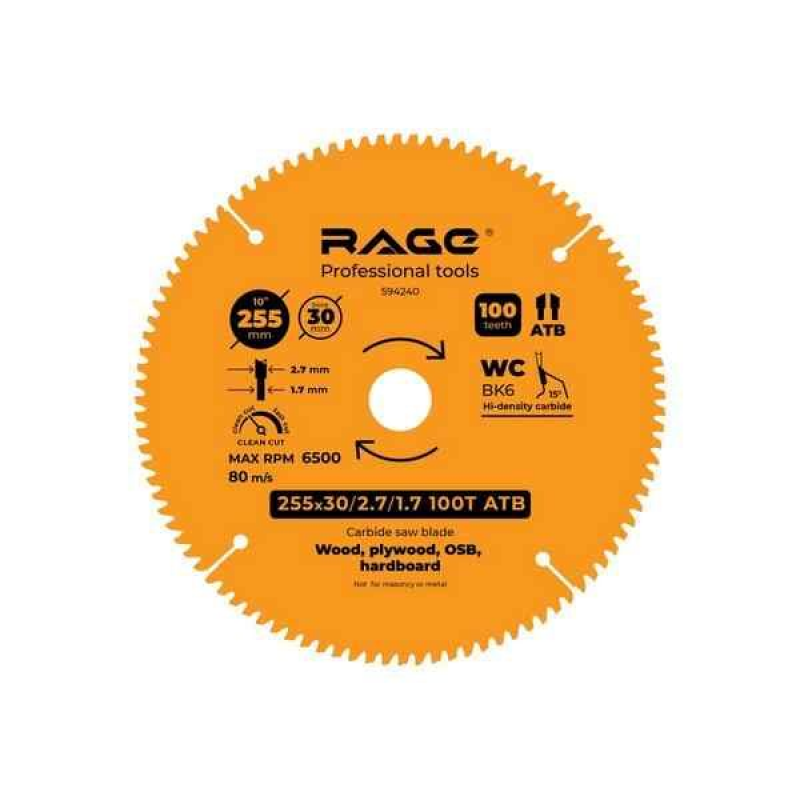 Диск RAGE 255 мм с 100 зубьями — это идеальный выбор для точной обработки древесных материалов, обеспечивающий чистый и гладкий срез, что делает его незаменимым для профессиональных задач.