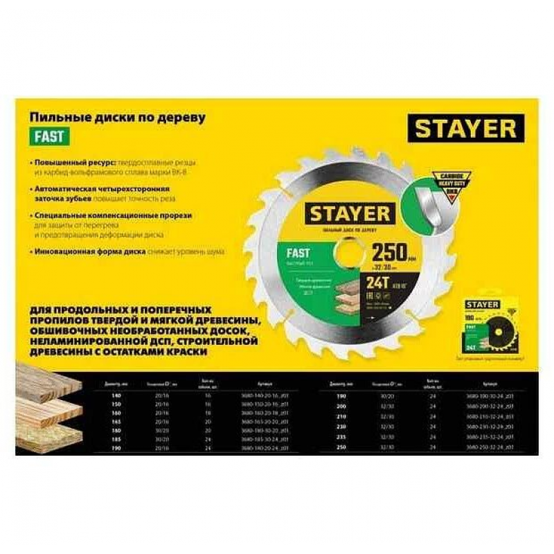 Диск пильный STAYER Fast 160 мм (модель 3680) — это надежный инструмент для быстрого и эффективного распила древесины. Сочетание прочных материалов и оптимального количества зубьев делает этот диск отличным выбором для тех, кто ценит скорость и точность работы.