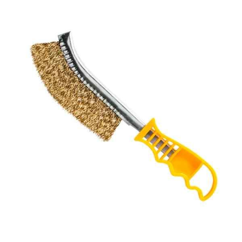 Щётка KUSSNER стальная, короткая ручка 1001-210000 удобная пластиковая ручка. Щетка подходит для ручной обработки поверхности. Предназначена для снятия краски, ржавчины, загрязнений, зачистки сварных швов, для подготовки материалов к сварке, покраске. Латунное покрытие защищает щетку от коррозии, что значительно продлевает срок эксплуатации.