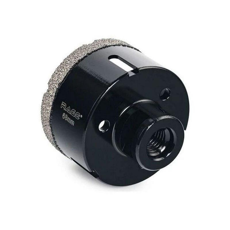 Алмазная коронка для УШМ RAGE позволяет выполнять ровные отверстия в твердых, но хрупких материалах без подачи воды. Благодаря технологии высокотемпературного вакуумного спекания алмазов удалось значительно повысить ресурс алмазной коронки и увеличить скорость сверления.